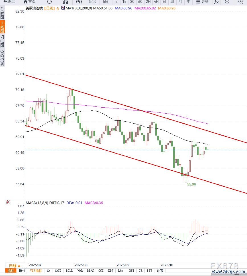 若油价能有用大略63好意思元上方压力区间,则可能翻开上行空间指向65好意思元;反之,若跌破59好意思元支握,或将重回疏忽通谈。